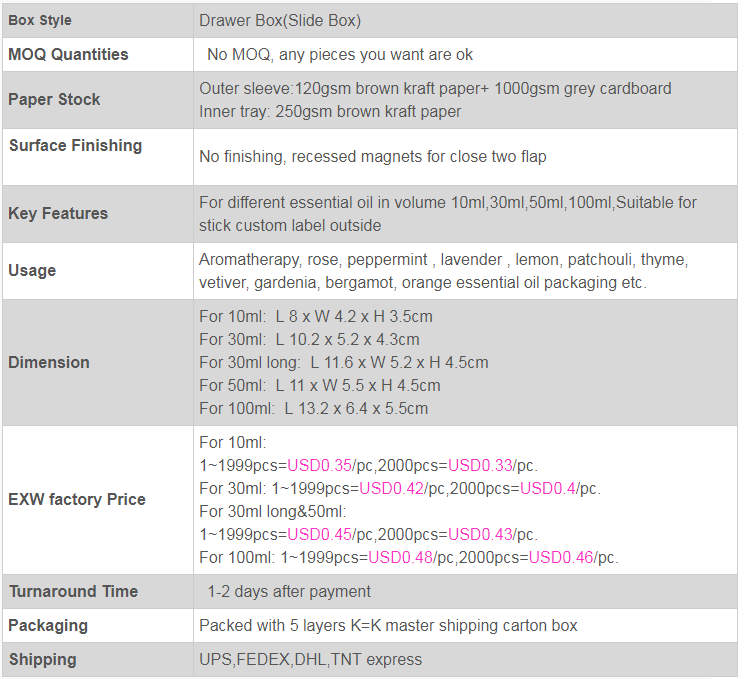 Walay kabuoan na 5 sukat .saray patar a karton ed .ta 10ml, 30ml, 30ml, 30ml, 30ml,50ml tan 100ml, mas kuneb mo ed leksab na porma no sayan kahon so onkana no sayan kahon na salming mo, no andi, sarag to met ya ipasadyam so antokaman ya labay mon salming.